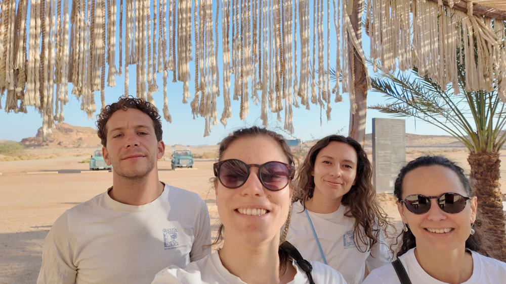 What stayed with us even more than the landscape, however, was the hospitality. Our host, joined by his cousins and later by his father, welcomed us with a generosity that felt both spontaneous and deeply rooted. With the son translating from Arabic to English, we shared stories about our months in Saudi Arabia, reflections on the culture of hospitality that has marked our stay, and the surprising closeness between our traditions. They offered us dates, Arabic coffee, and a traditional sweet made with goat fat—simple gestures that carried the warmth of a long-standing custom. It was a reminder that while our days at Hegra are shaped by stone, data, and conservation methods, the most memorable moments often come from the people who quietly open a door into the life of this place.