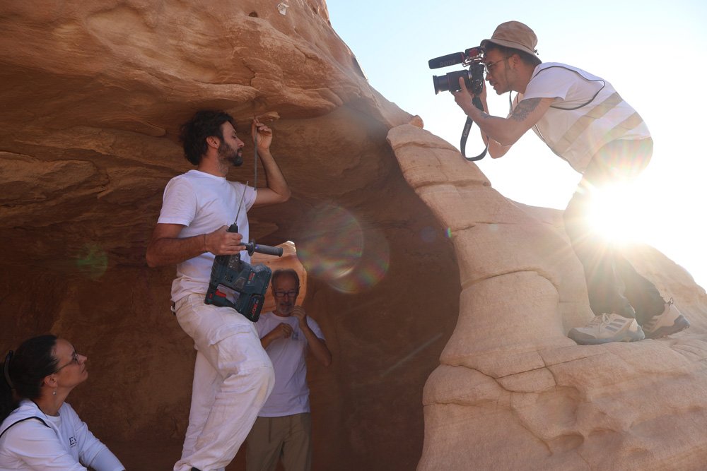 This season has also brought a new and rather unexpected companion to our days: the camera. Alongside our technical work, we have begun filming the documentary that will narrate the full arc of this three-year conservation project. With a small but determined team, we’ve recorded scenes of daily routines, conservation procedures, measurements, sand washing and sieving, and the many behind-the-scenes details that shape our work at Hegra.
